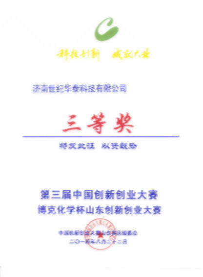 2014年8月22日,公司榮獲中國創(chuàng)新創(chuàng)業(yè)大賽三等獎(jiǎng)